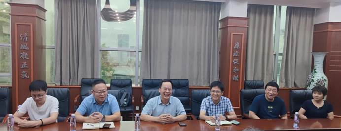 肖文精院长首先代表学院向到访的朱君江院长一行表示欢迎,随后双方互相交流了学院的办学现状及存在的一些问题。之后朱君江院长阐述即将承办第九届湖北省普通高校大学生化学实验技能竞赛,此次来访主要目的是学习我院的办赛经验。原弘副院长详细介绍了我院承办第八届湖北省普通高校大学生化学实验技能竞赛的具体情况。
