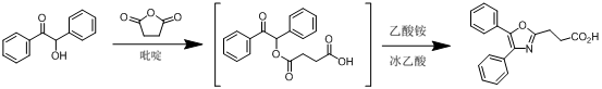 丁二酸酐1.2 g (12 mmol),二苯乙醇酮1.8 g (8.5mmol),吡啶1 mL,乙酸铵1.2 g (15.5mmol),冰乙酸4.0 mL